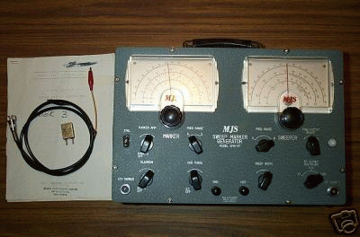 I checked the performance using my Leader digital frequency meter: the 608C produces beautiful sine waves and is accurate up to at least 90Mhz (the limit of the Leader). The front panel meters correctly show the modulation and output signal levels. Somebody said that by using the analogue modulation input on the 608C it would be possible to broadcast video to a nearby TV! The manual for the 608D (very similar to the 608C, but features a crystal marker) is here. | |