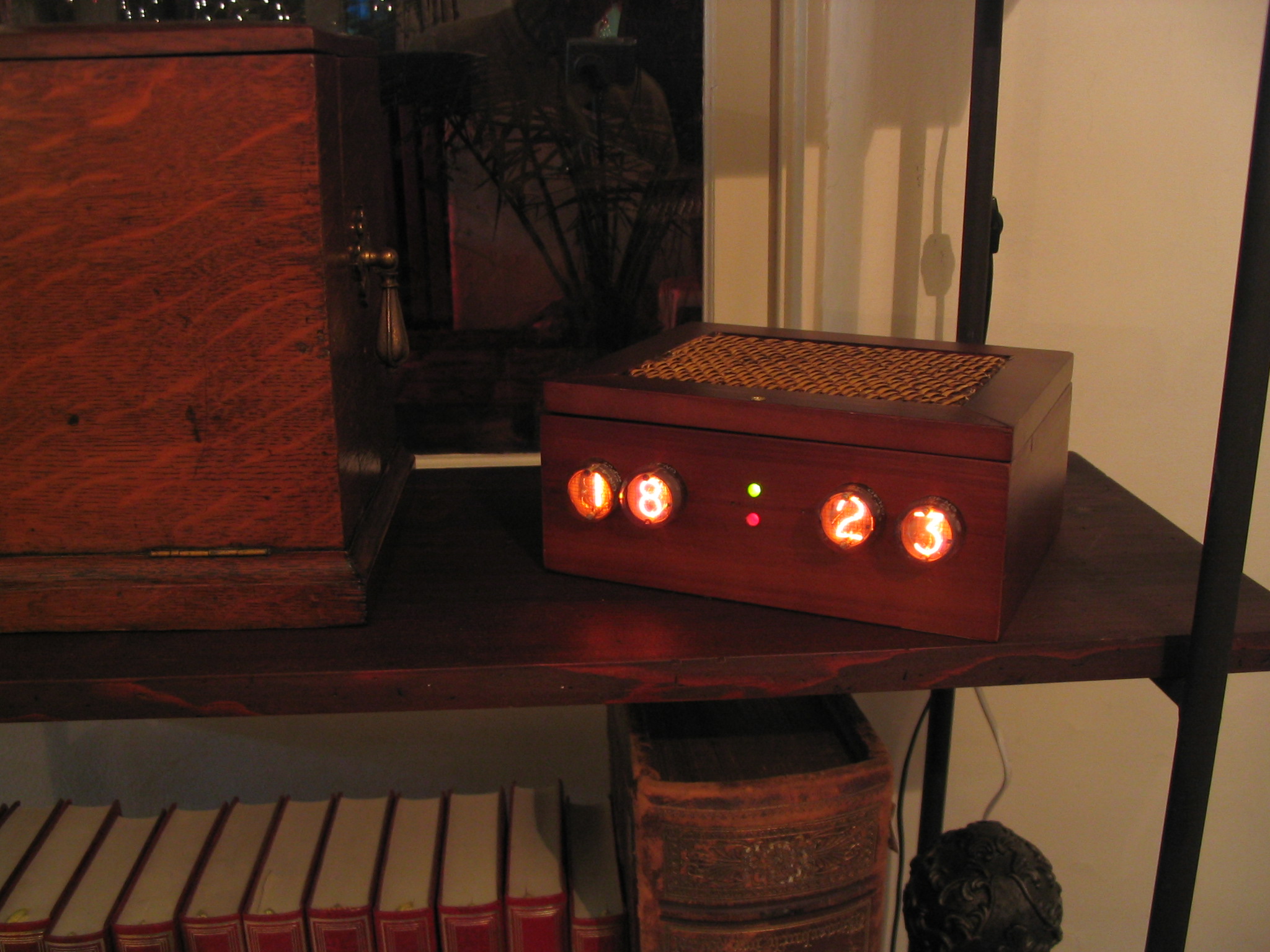 My Nixie tube clock.I found a nice little box to put it in in a shop in France.