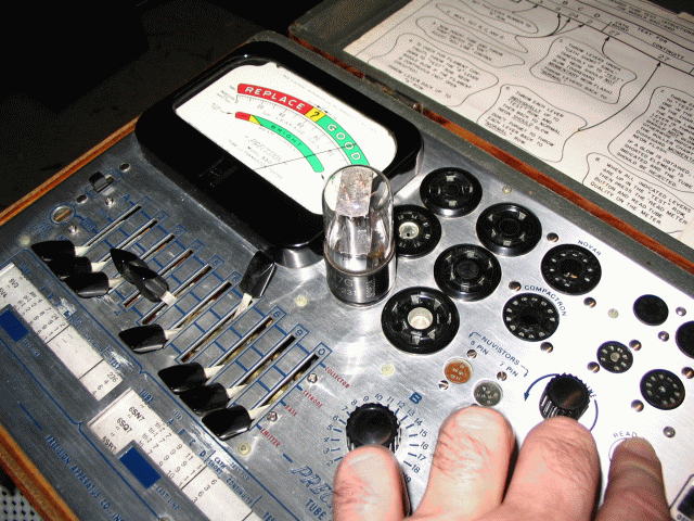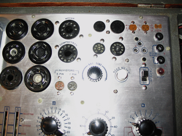 More pictures here, including showing the instrument testing a 6SN7GT dual triode: (click on thumbnails for larger versions) |