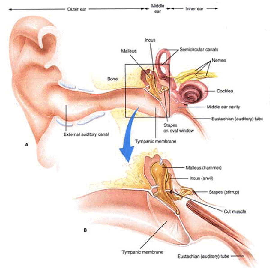 Vibrations of the eardrum are transmitted to