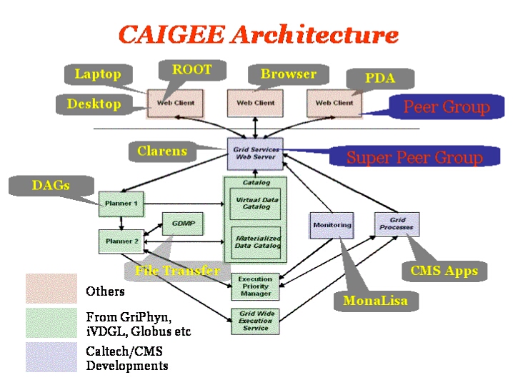 The work on GAE at Caltech is a natural progression from our completed projects GIOD and ALDAP, our recently funded project CAIGEE, our collaboration in PPDG, GriPhyN, iVDGL and more recently the GECSR project.