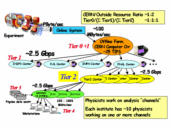 distributed over high speed networks to ~10-20 national �Tier1� centers in the