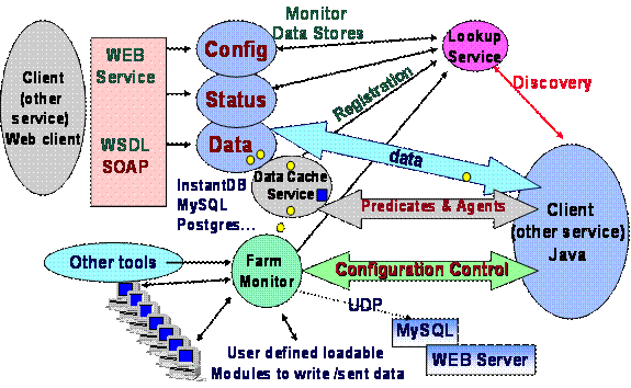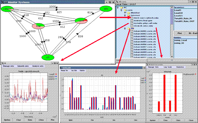 [[47] ] MONALISA is currently interfaced to Ganglia (http://ganglia.sourceforge.net/ )and MRTG (http://mrtg.hdl.com/mrtg.html ). It will be interfaced to MDS2 (see http://www.globus.org ) and Hawkeye (see http://www.cs.wisc.edu/condor/hawkeye/ ) in the near future.