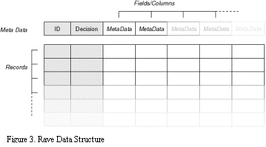The ID number, which is read or created by the input module, is untouched by the RAVE system, only carried along with the record. In this way, a user can keep track of which record is which: after selecting the outliers that are worthy of further study, the user wants to be able to make a list of them, find them in the primary data, find them in other databases. The ID provides this immutable reference mechanism if necessary.