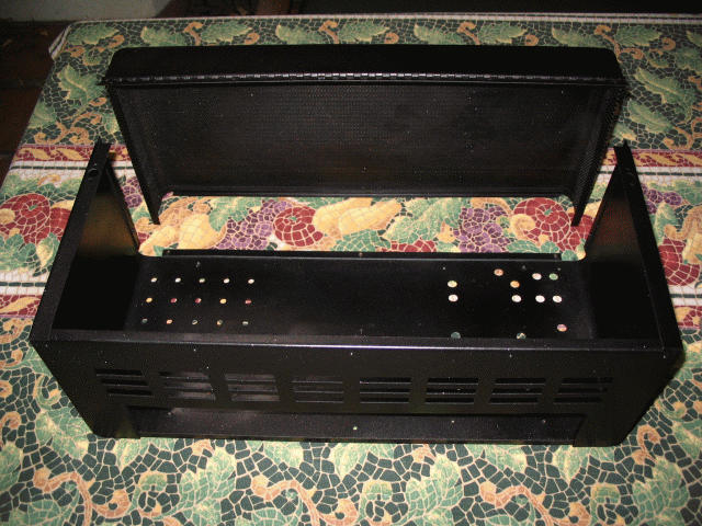 After these changes, the receiver fired up and received stations. I rubbed down the cabinet with emery paper, and spray painted it with black car paint (DupliColor Universal Black):
