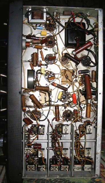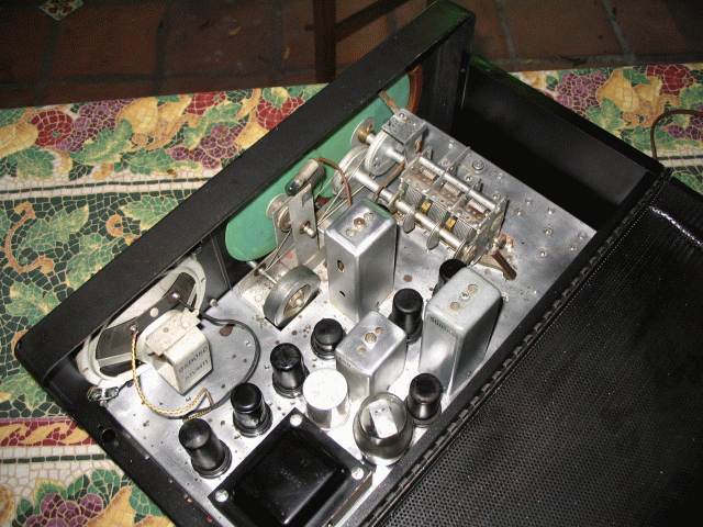 In this picture (below) can be seen the octal tube holder and wires, an add-on whose purpose is unknown (and since removed).