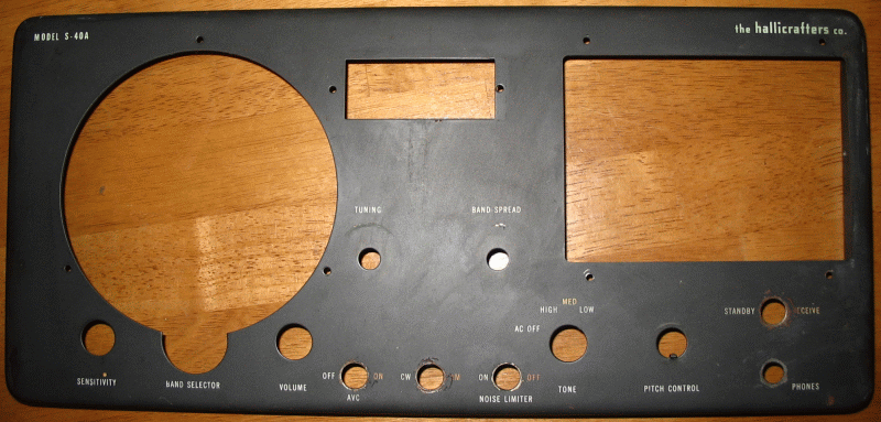 The front panel I completely disassembled, cleaned up, and then covered with a very light coating of polyurethane satin enamel. Here are some more pictures of the S40A as received. The knobs, front panel and chassis were filthy.