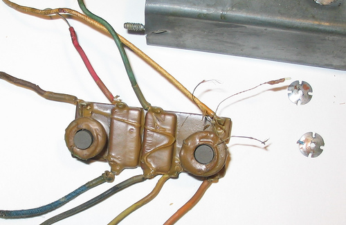 The IF transformer itself was not in a good state: one of the adjustment lugs was immovable. I had to disassemble it and rewire it inside: