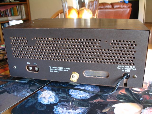 Purchased on Ebay for $10.49 in condition below. Cosmetically dirty, but perfect apart from a small crack on the front panel plastic, across the screw hole near the Tuning knob. Four tubes, but remarkably sensitive and selective.