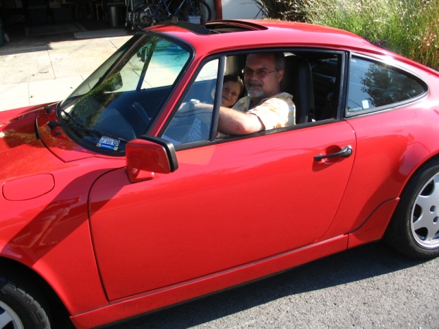 The following photo shows Isabella in the passenger seat as I am about to garage the 911 after returning from buying it in San Diego.