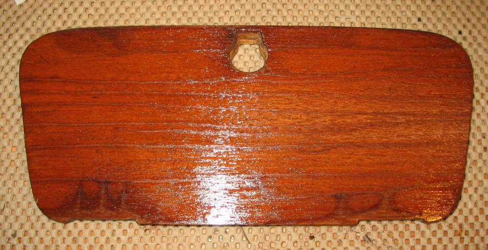 applying a first stain with "Red Mahogany" (glove box).
