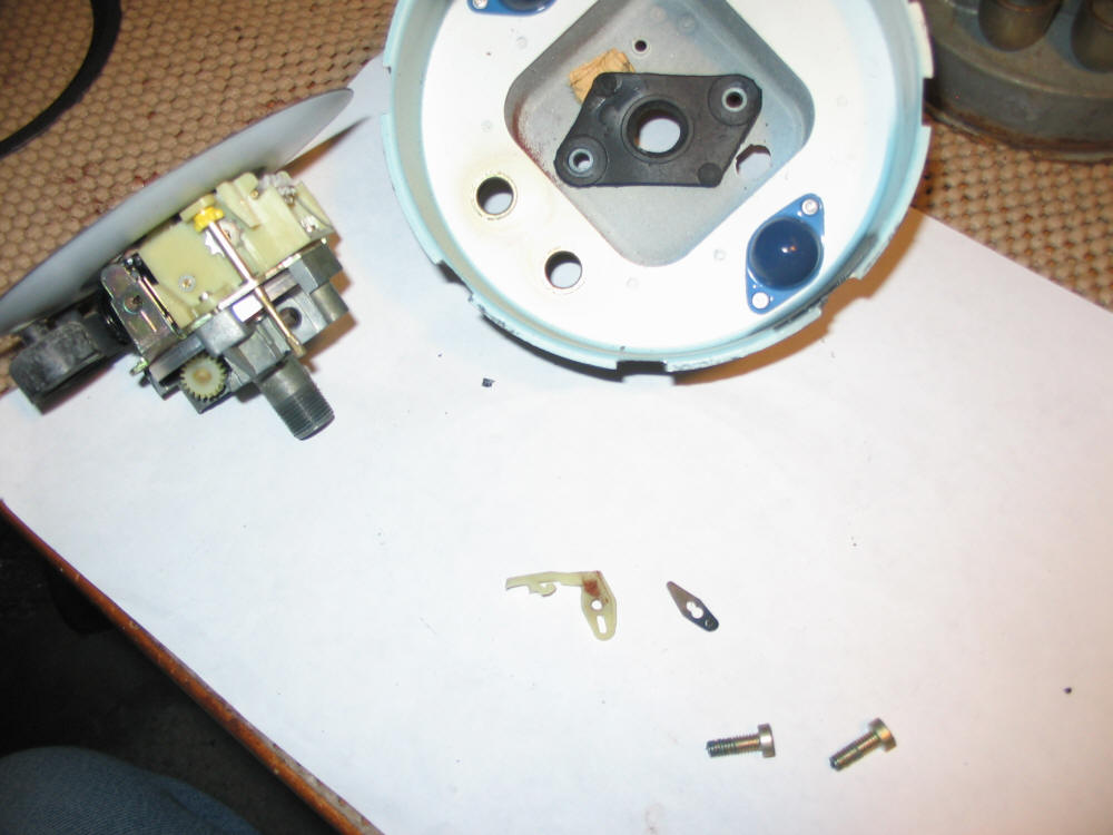 The speedo was not working: a pawl had become detached. I dismantled the speed, cleaned it up, and refitted the pawl. Here is the dismantled speedo: