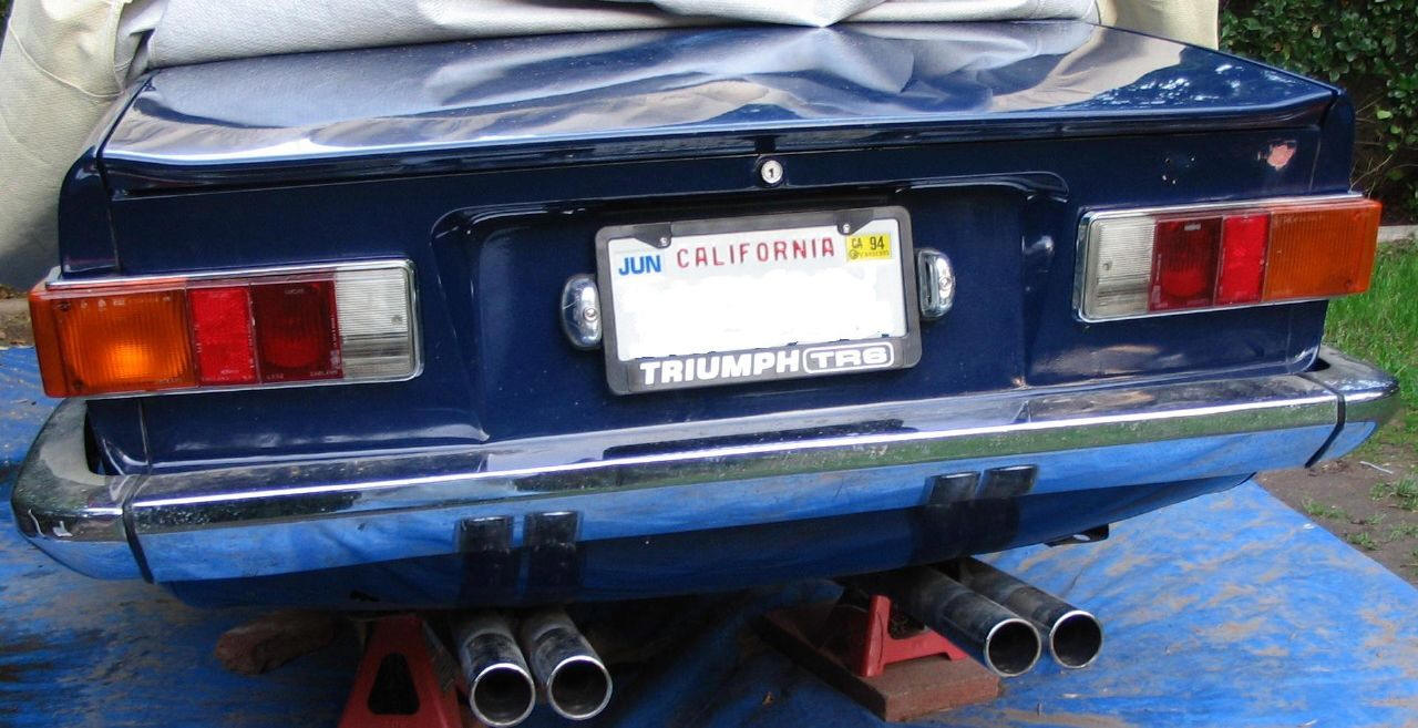 For some reason the car had no license plate lights. Originally it would have had some on the rear bumper, but this has evidently been replaced at some point with one from a more recent TR6, which had license plate lights built into the overhang above the plate. I picked up a TR3 license plate light from Ebay, but it turned out to be too tall, and wouldn't fit. I ended up finding a nice BMW plate with built in lights at the side, from an early 70s model 2002 or 3.0CSi. This fits very well, and looks period correct at least: