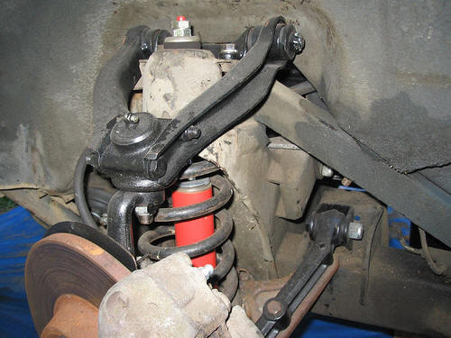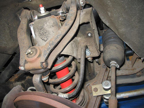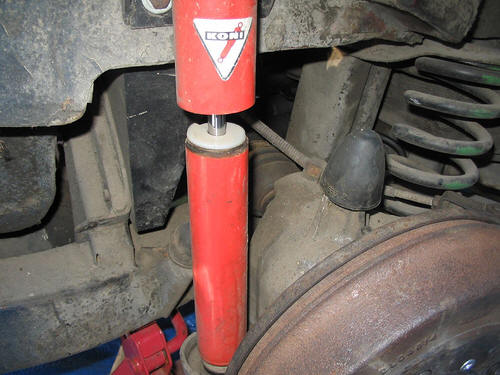 The suspension fore and aft has been upgraded to adjustable coil over Koni shocks. This has been done with the Moss kit, which includes brackets that mount on the bodywork and strengthen the car significantly.