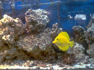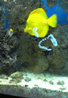 fish alive in tank is one of the striped damsels: the rest have been killed, probably by