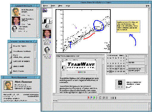audio conferencing, together with shared files, whiteboards, and clipboards. The current