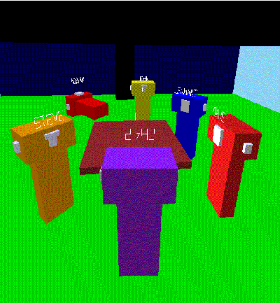 abstractions, support for multiple users communicating via a combination of 3D graphics,