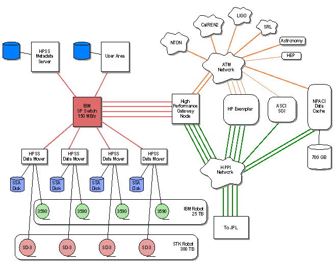 | Systems used and their locations (e.g.: HPSS, T3E, PC cluster, Cave, etc.) |