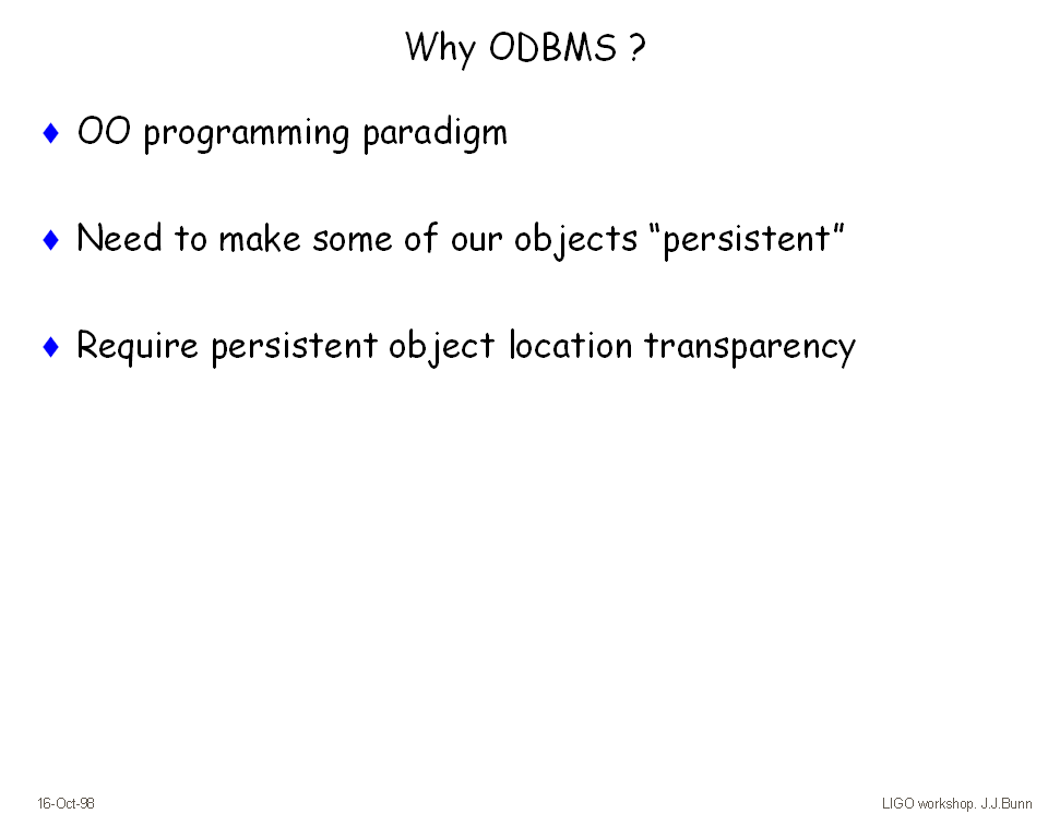 suits our problem space well: rich hierarchy of complex data types (raw data, tracks, energy clusters, particles, missing energy, time-dependent calibration constants)