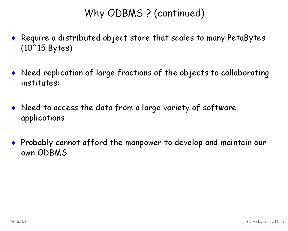 Probably cannot afford the manpower to develop and maintain our own ODBMS.