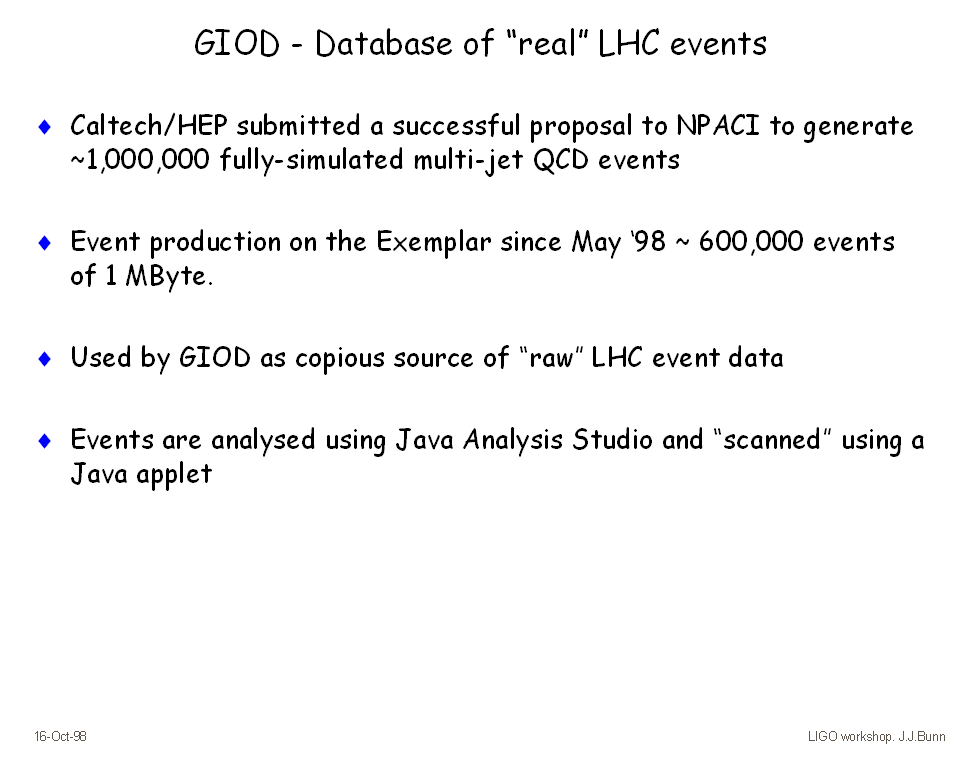 Used by GIOD as copious source of raw LHC event data