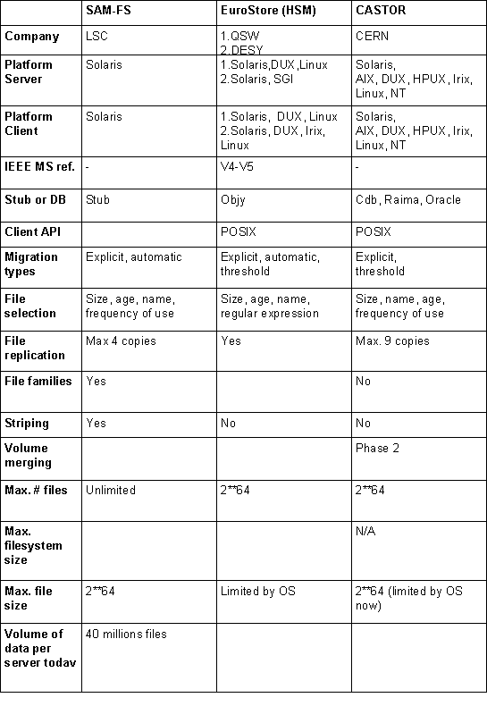 The investigations have been limited to the products or projects that are relevant to the computing for the LHC era in terms of capacity and performances. These products or projects have been selected on the basis of the HEP requirements. We have excluded from our study the Object-Oriented DataBase Management Systems because this technology is already being investigated by the RD45 and MONARC projects and because the file system remains the basic storage paradigm in the computing industry. The local file systems are not part of this study because they are integrated into operating systems and because the emergence of 64 bits file systems will cover the needs for the LHC era.