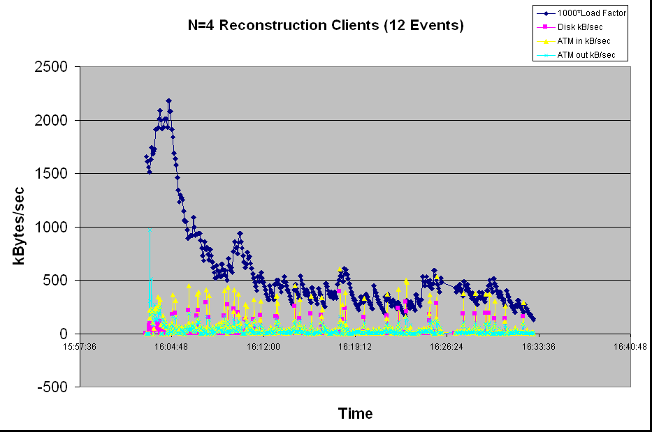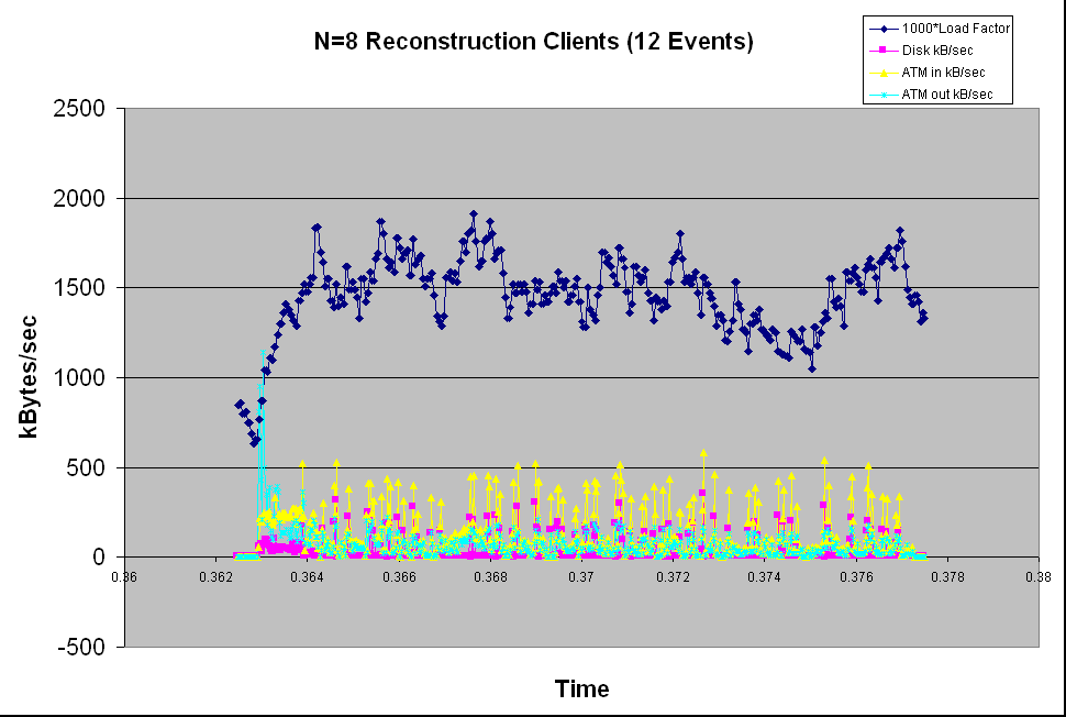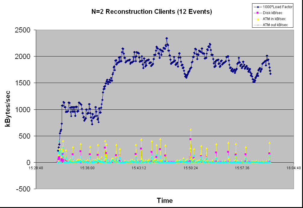 Note that the initial rate obtained of ~12 MBytes/sec on both the ATM and the disk was confirmed by the ftp utility, which reported 11.5 MBytes/sec for the second file transferred.