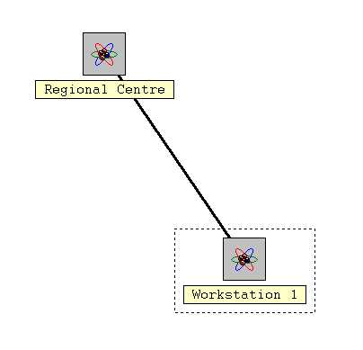 The user works on a single workstation, which is connected to the "Regional Centre" via a network of semi-infinite bandwidth. The completed network model looks like this: