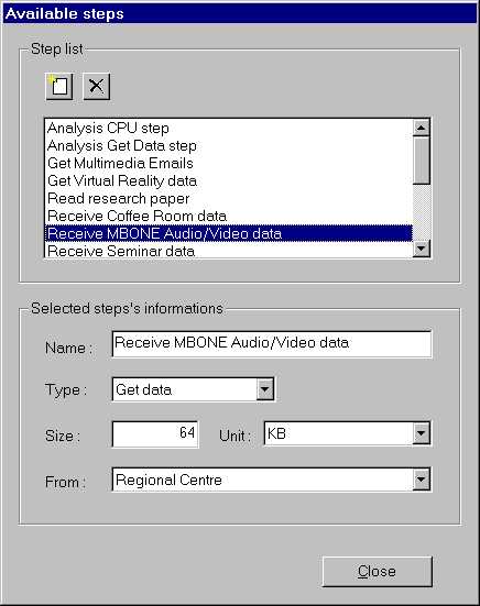 The two task steps "Receive MBONE Audio/Video data" and "Send MBONE Audio/Video data" are defined in terms of data size and location: