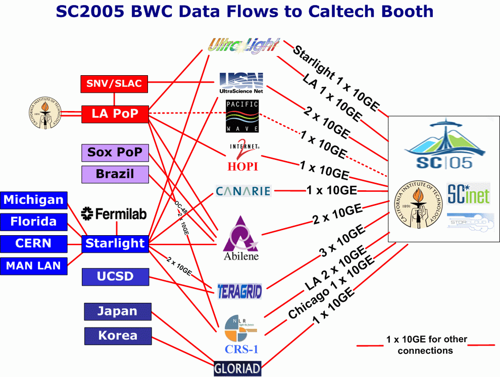 SC2004 record of ~100Gbits/sec (roughly equivalent to downloading 1000 DVDs in